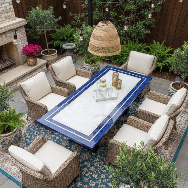 Be the first to review “White Quartz Stone Table with Lapis Lazuli Border – Handcrafted Luxury Gemstone Furniture”