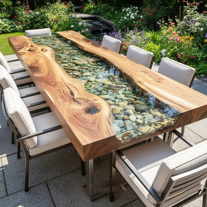 • Handcrafted luxury epoxy river table