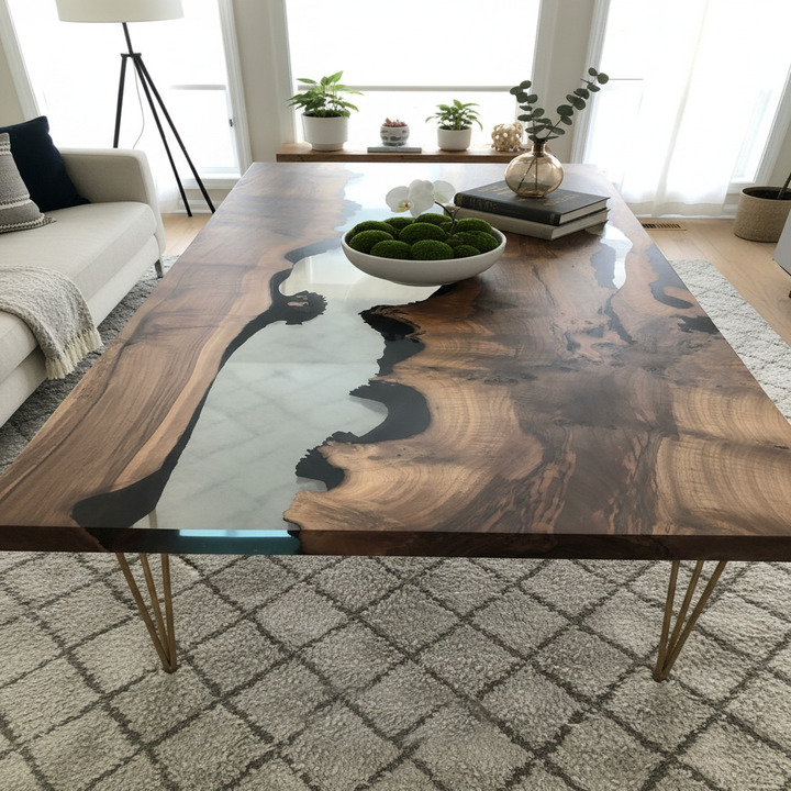 Handcrafted luxury epoxy river table