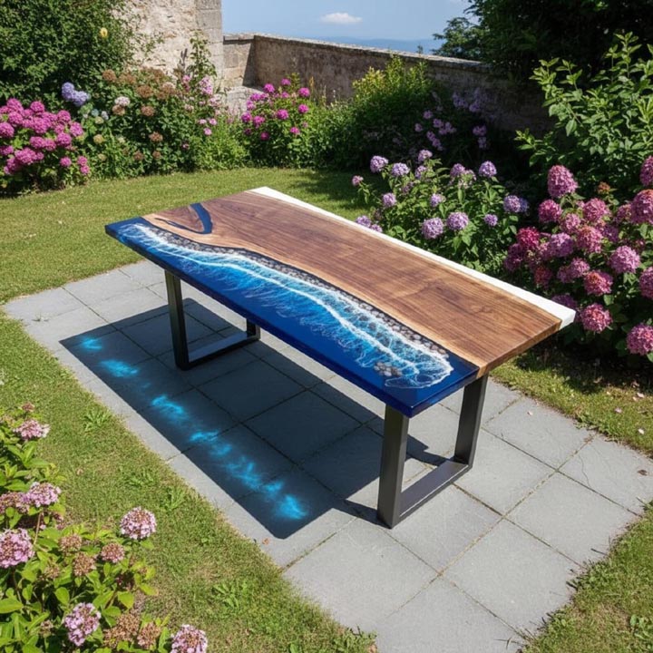 Ocean blue resin inlay with high-gloss finish