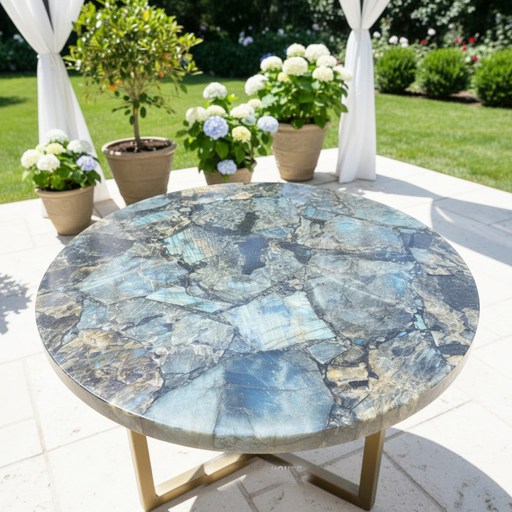 Labradorite Round Table | Luxury Handcrafted Semi-Precious Stone Furniture