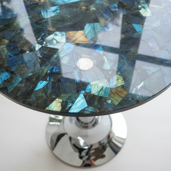 Designed for those who appreciate rare materials, this luxury labradorite table is made from authentic semi-precious crystal stone.