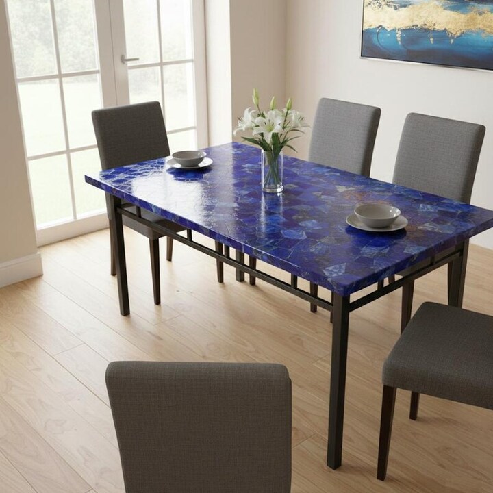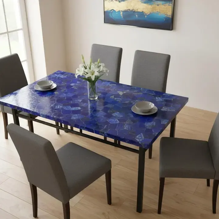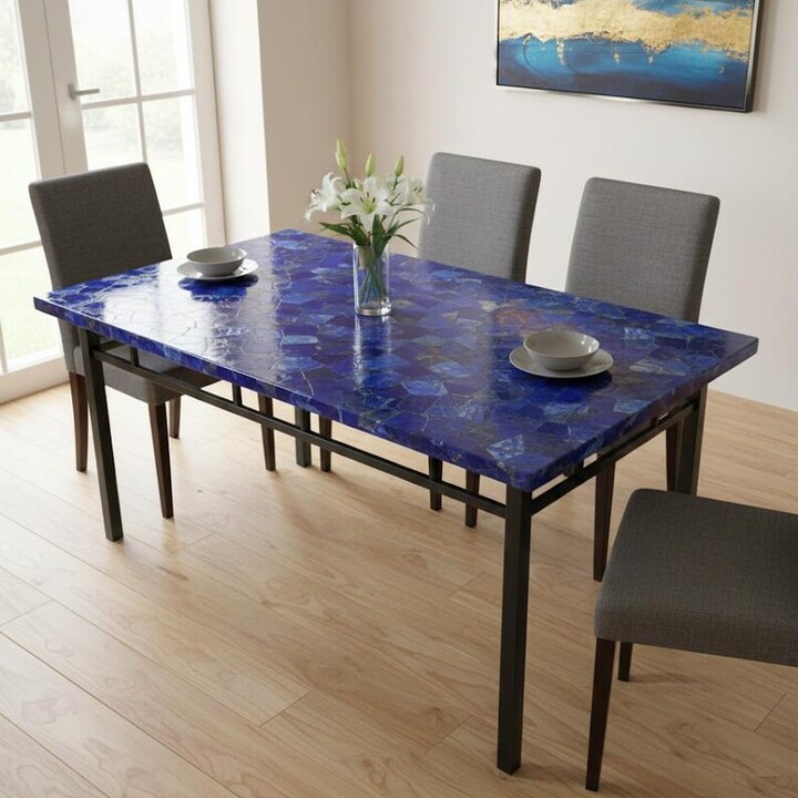 A custom Lapis Lazuli stone table is a luxury furniture piece made from natural blue gemstone and designed to your preferred size and style.