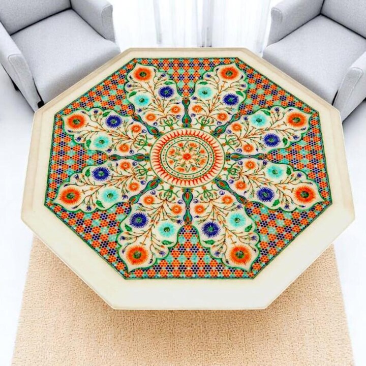 Each table is individually handmade by skilled artisans, ensuring precision, uniqueness, and lasting elegance. Its fine floral inlay design blends seamlessly with both modern and traditional interiors, making it perfect for living rooms, lounges, or boutique luxury spaces.