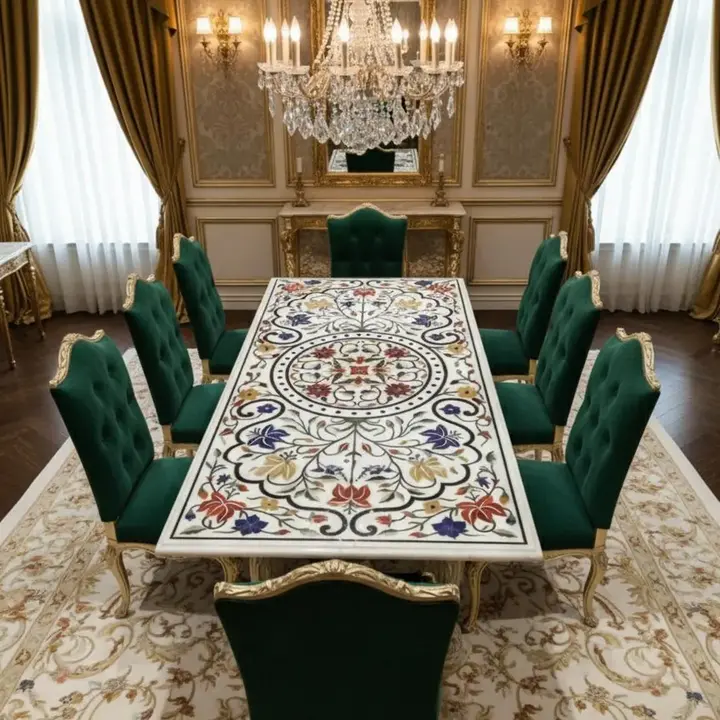 This handmade white marble dining table is more than furniture—it is a statement of heritage craftsmanship, fine artistry, and timeless elegance.