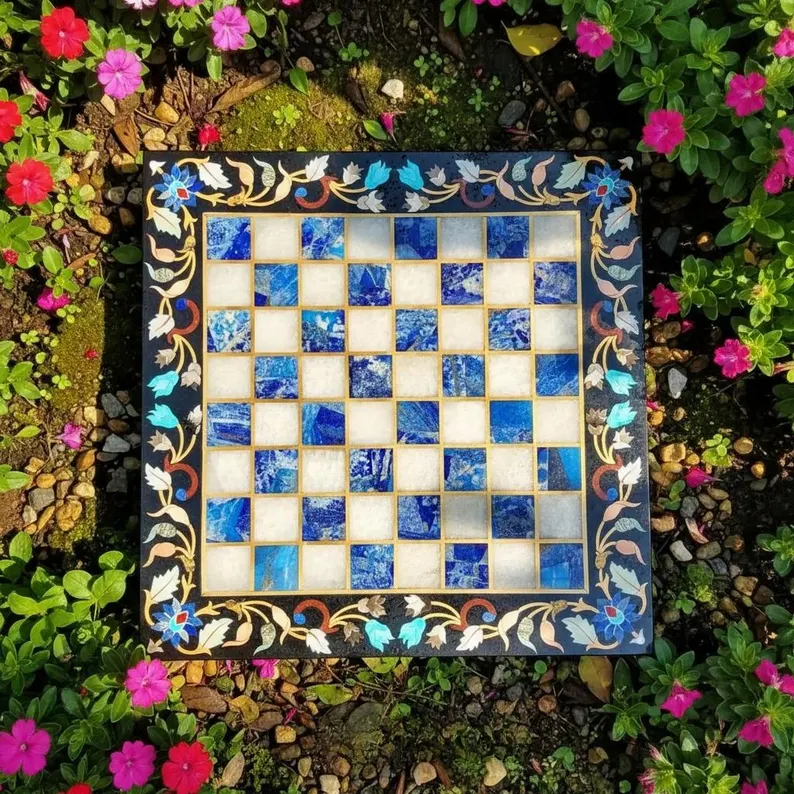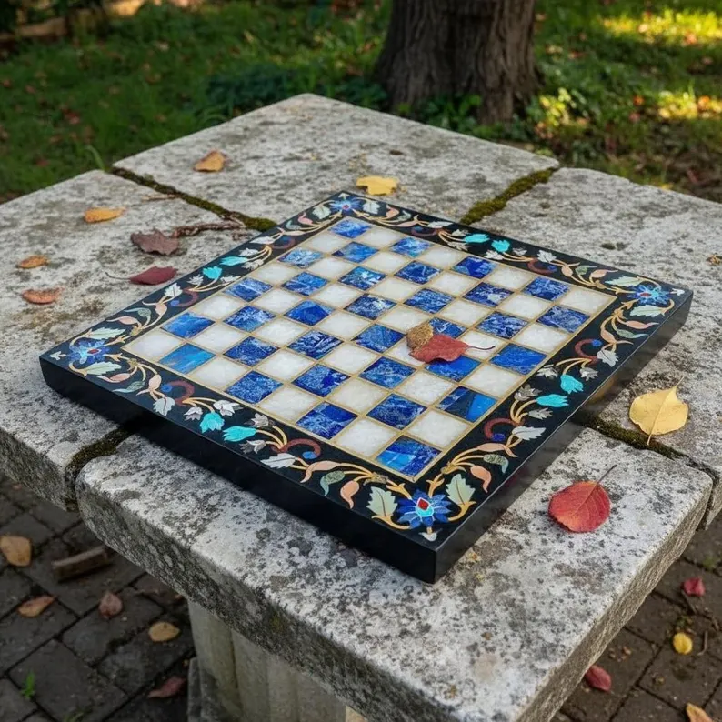 Unveil sophistication in every match with this black marble inlay chess set—a handcrafted elegant premium board from India’s finest artisans. Bold black marble frames exquisite inlay patterns, creating unmatched contrast and play precision.
