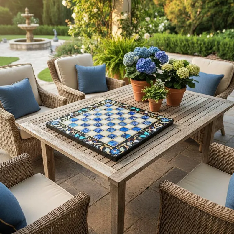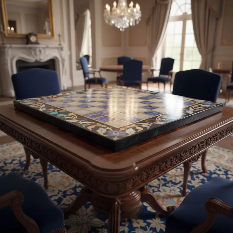 Intricate Marble Inlay: Deeply embedded stones form crisp squares for secure piece placement and artistic flair.