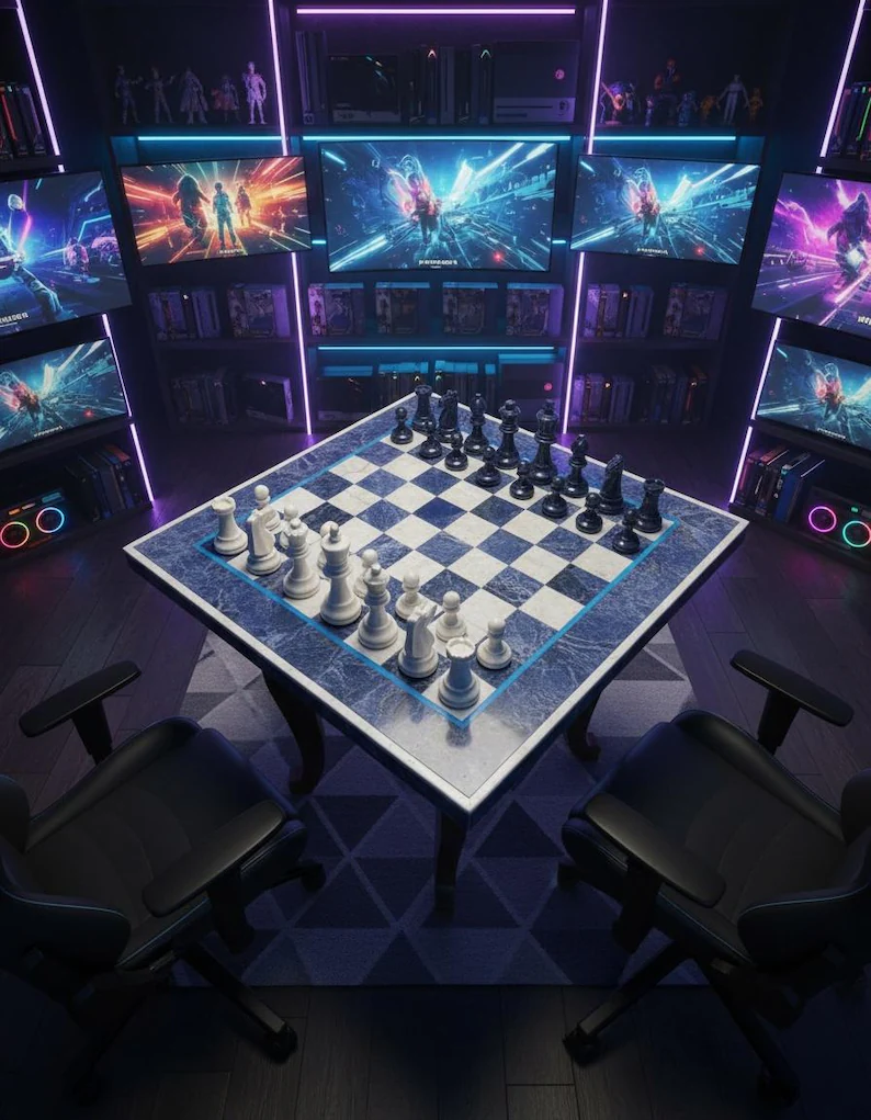 Designed as both a functional board game and a statement décor piece, this handcrafted sodalite chess set enhances living rooms, offices, studies, and luxury interiors. Its solid stone construction ensures long-lasting quality, making it an heirloom-worthy collectible for chess enthusiasts and décor connoisseurs alike.