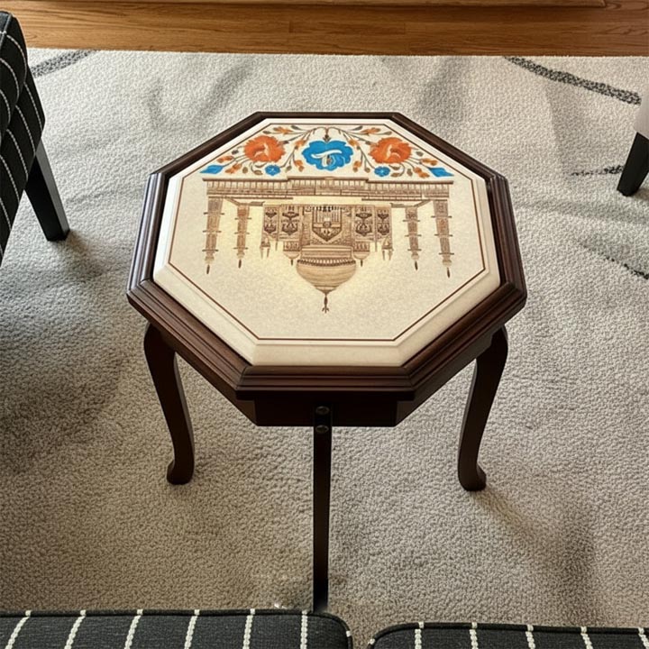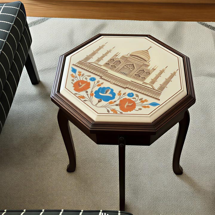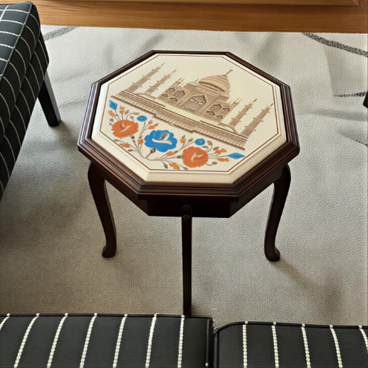 Ideal for luxury home décor enthusiasts, this table merges artistic beauty with everyday practicality. Its robust construction makes it long-lasting, while the Taj Mahal floral inlay design enhances the aesthetic appeal of any modern or traditional interior.