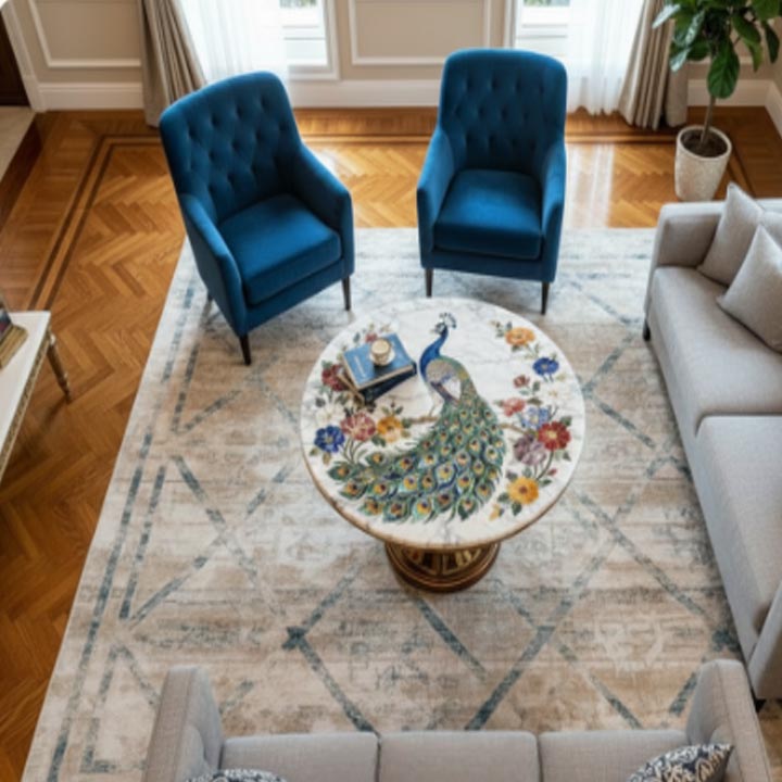 At Emkay Handicraft Exports, every creation reflects exceptional artisan craftsmanship, premium materials, and luxury design. Own this luxury white marble coffee table with peacock and floral inlay and elevate your living space with timeless beauty and sophistication.