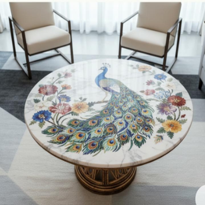 Ideal for luxury home décor enthusiasts, this table blends aesthetic beauty with everyday practicality. Its sturdy construction guarantees long-lasting use, while the detailed peacock and floral design makes it a true statement piece for any modern or traditional interior.