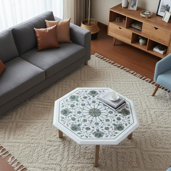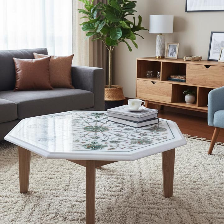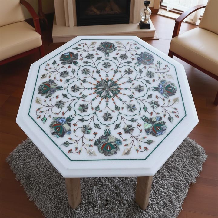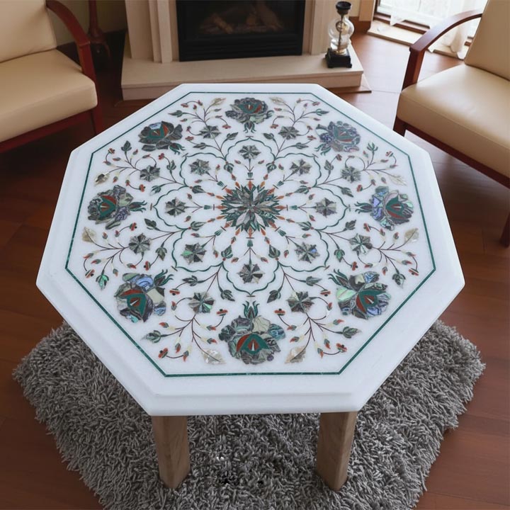 ❓ What is a white marble coffee table with floral inlay?