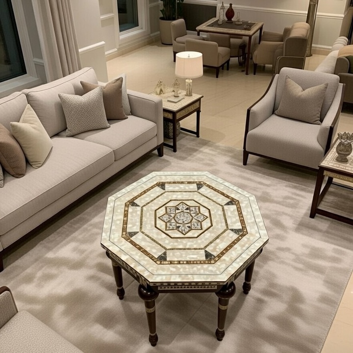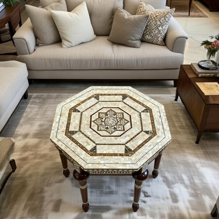 Premium Mother of Pearl Table | Handcrafted Shell Inlay Home Decor