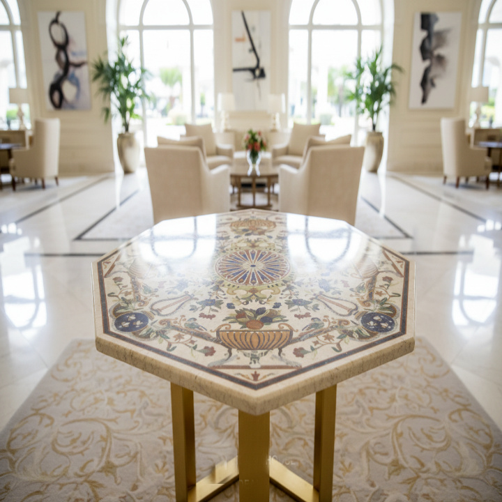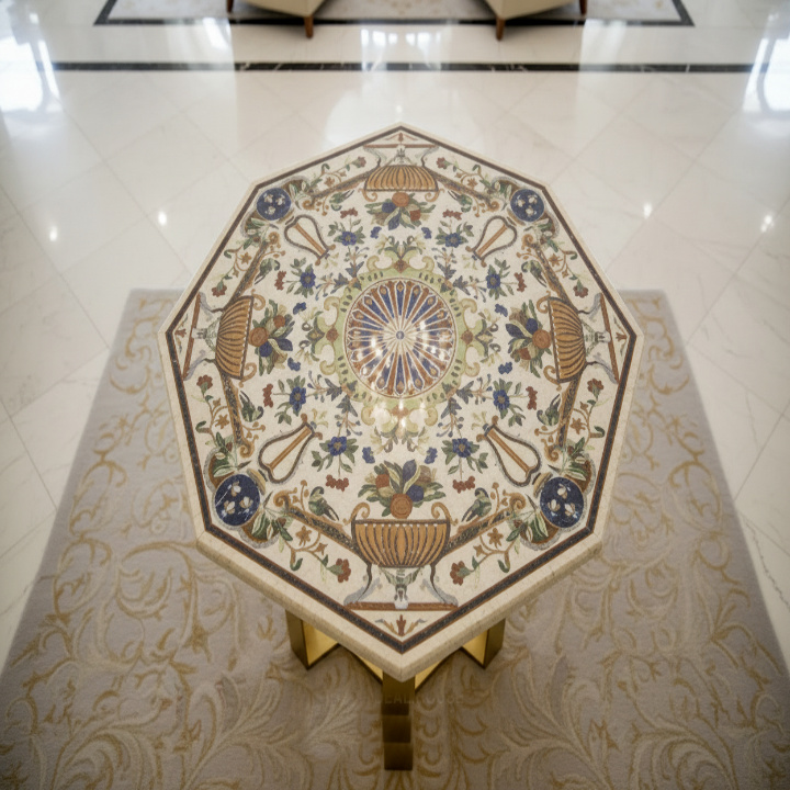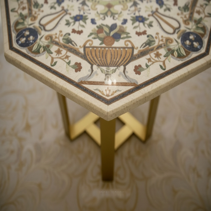 Each table is meticulously handcrafted by experienced artisans, ensuring exceptional quality, precision, and uniqueness. The warm tones of yellow marble combined with delicate floral inlay patterns make this piece a striking focal point for living rooms, lounges, hotels, and luxury interiors. Whether used as a coffee table, center table, or decorative accent, it adds sophistication and artistic charm to any setting.