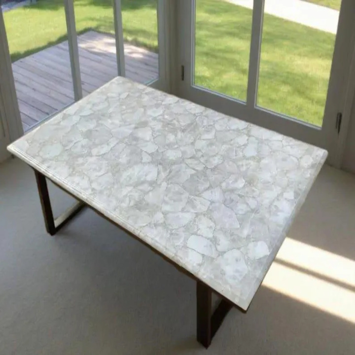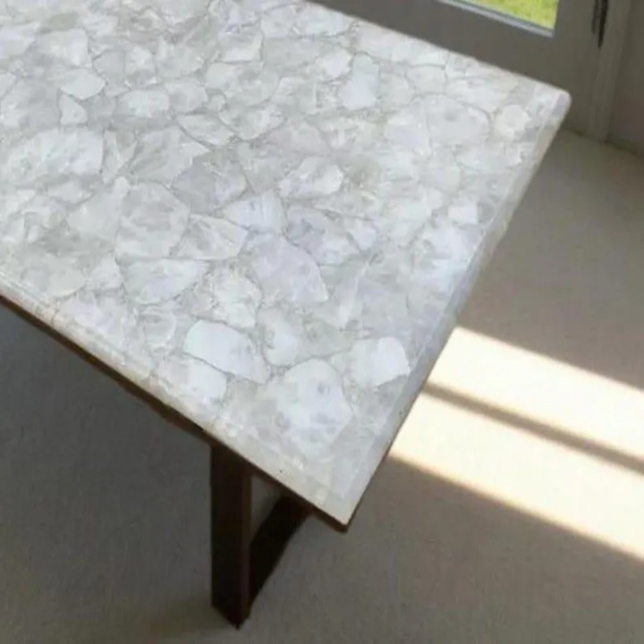 Elegant White Crystal Quartz Table Top | Artisan Crafted Luxury Furniture