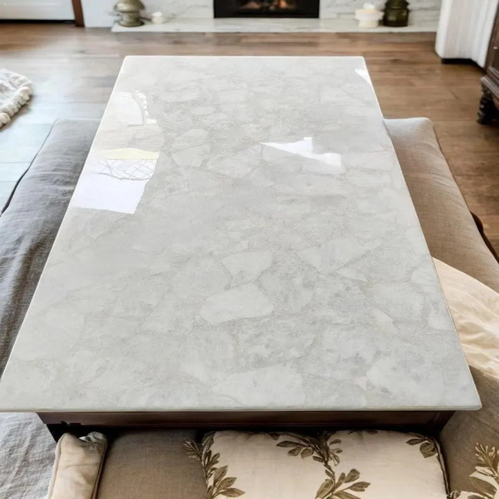 Handcrafted quartz table top made from premium natural quartz stone. Featuring a smooth polished finish and elegant design, it offers durability, scratch resistance, and timeless luxury—ideal for coffee tables, center tables, or dining spaces.
