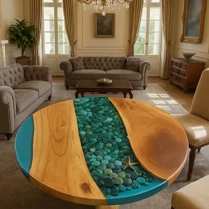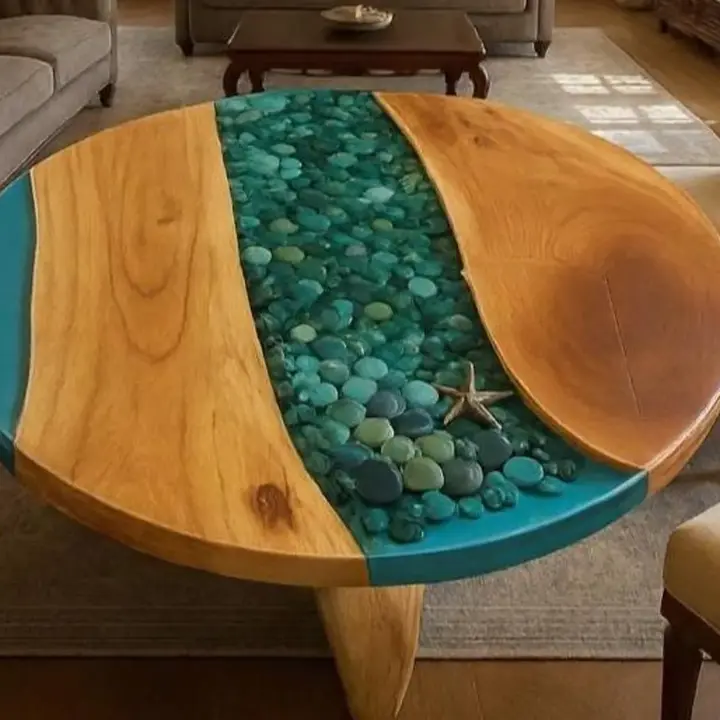 Bring the beauty of the ocean into your home with this handcrafted ocean epoxy resin table. Designed with flowing blue resin that mimics ocean waves and natural live edge wood, this table is a striking blend of art and furniture. Handmade by skilled artisans, it’s perfect as a dining table, coffee table, or statement piece for modern, coastal, or luxury interiors.