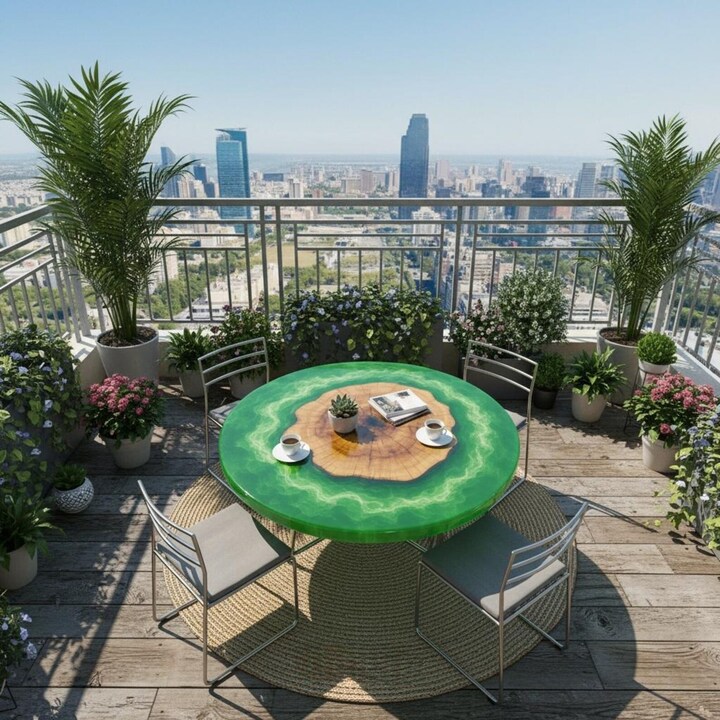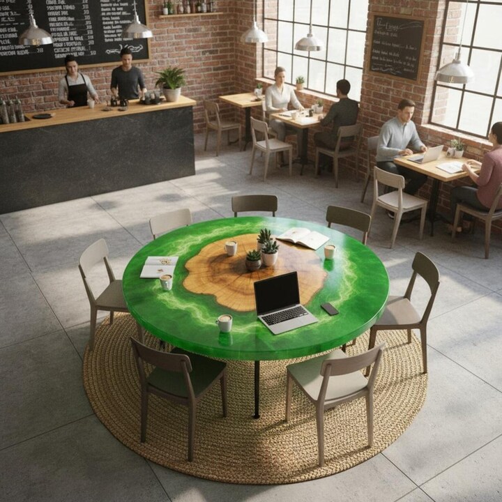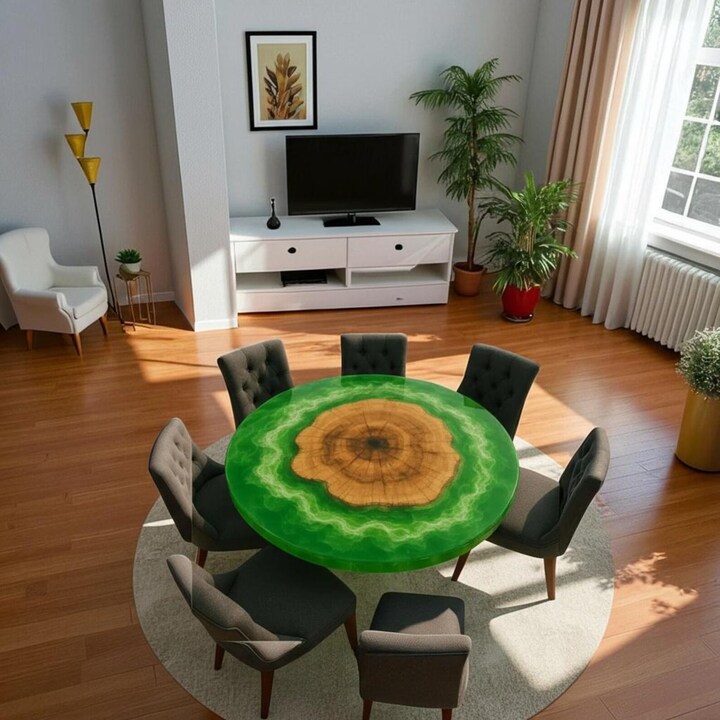 Elevate your interior with this Green Epoxy Resin Round Coffee Table, a stunning blend of nature and modern craftsmanship. Handcrafted using premium live edge solid wood and rich green epoxy resin, this center table highlights the natural beauty of wood grain flowing seamlessly through vibrant resin tones.