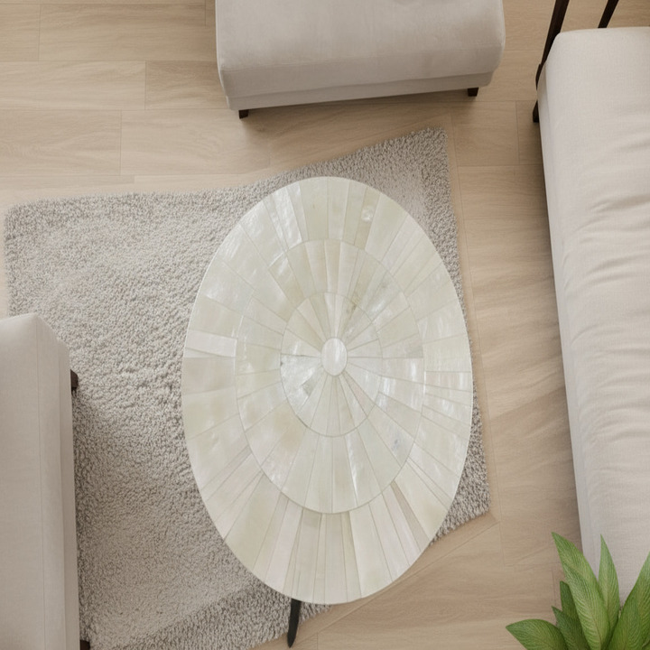 Crafted from premium natural selenite, this oval crystal table showcases a smooth polished surface with a subtle glow and natural crystal patterns. Known for its serene and luminous appearance, selenite brings a modern yet timeless charm to any space.